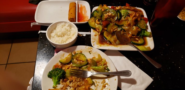 The portions were enormous and everyone warned us that we would be eating for the next 2 days! They weren’t kidding. Here is a picture of my cashew chicken and white rice. It was a huge portion and delicious!