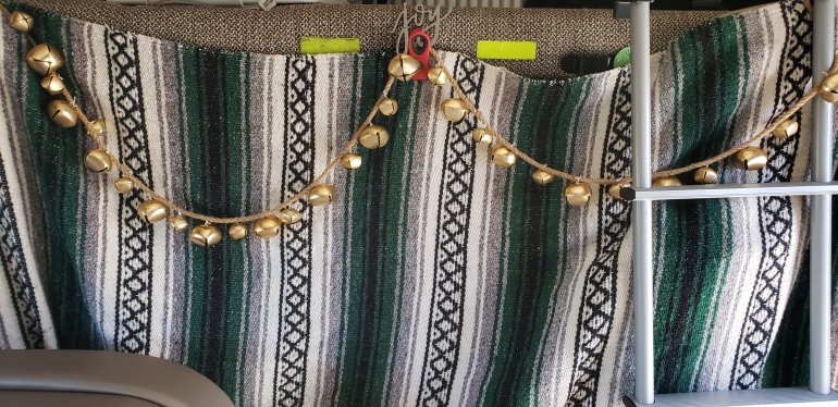 It’s been so windy and kind of gray that I couldn’t really put anything outside in the way of decorations so I have my jingle bells inside hung that I got at Magnolia Farms in Waco, Texas last year.