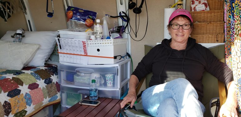 I made burritos and we had chips and salsa as we sat in the cold and wind with Myra, Steve, Sara and myself. Sara was originally from Connecticut and was tricking out her Van.