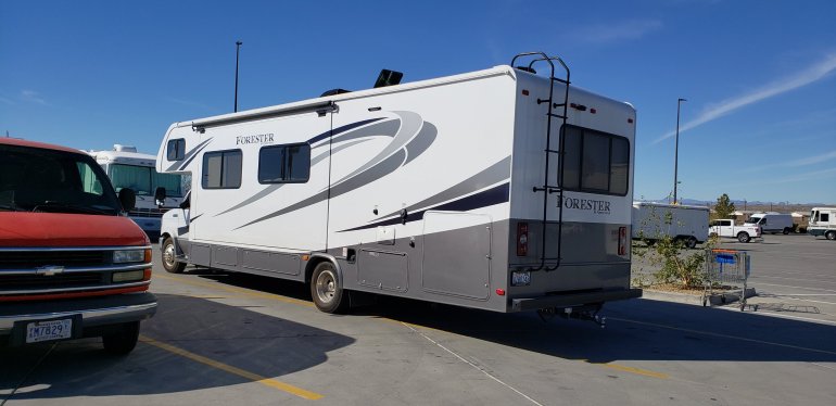 As I was putting the groceries away, I heard a big thump. Tried to open the door but this 36′ RV was blocking it so bad that I could barely stick my head out. I yelled “I think you hit my mirror you asshole!” He stared at me in his rearview mirror and I said “Move! I can’t even get my door open!”