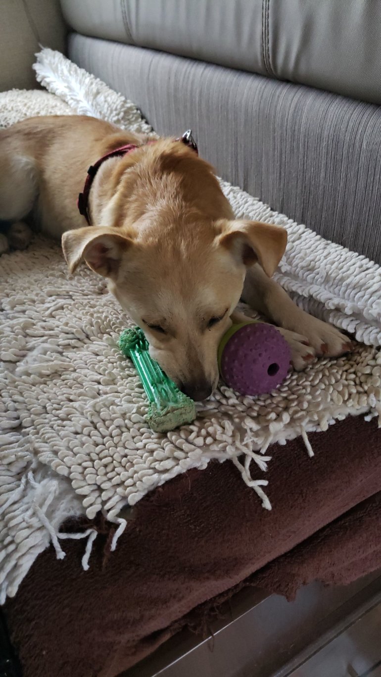 Now I know he doesn’t need anything to sit on in the crate while I’m gone.