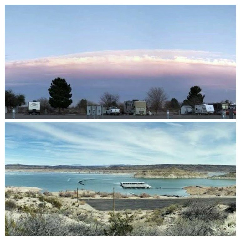 Then and now. Deming after dust storm and bottom 3 hrs later in Elephant Butte.