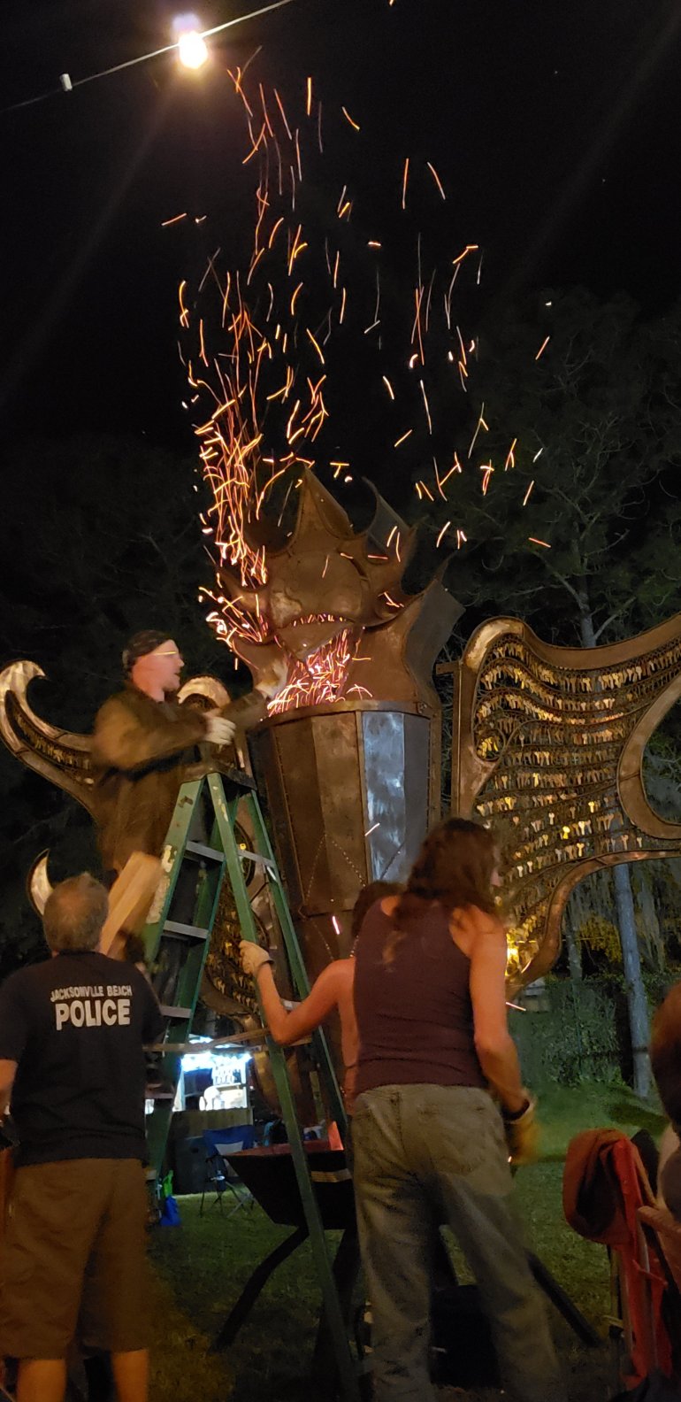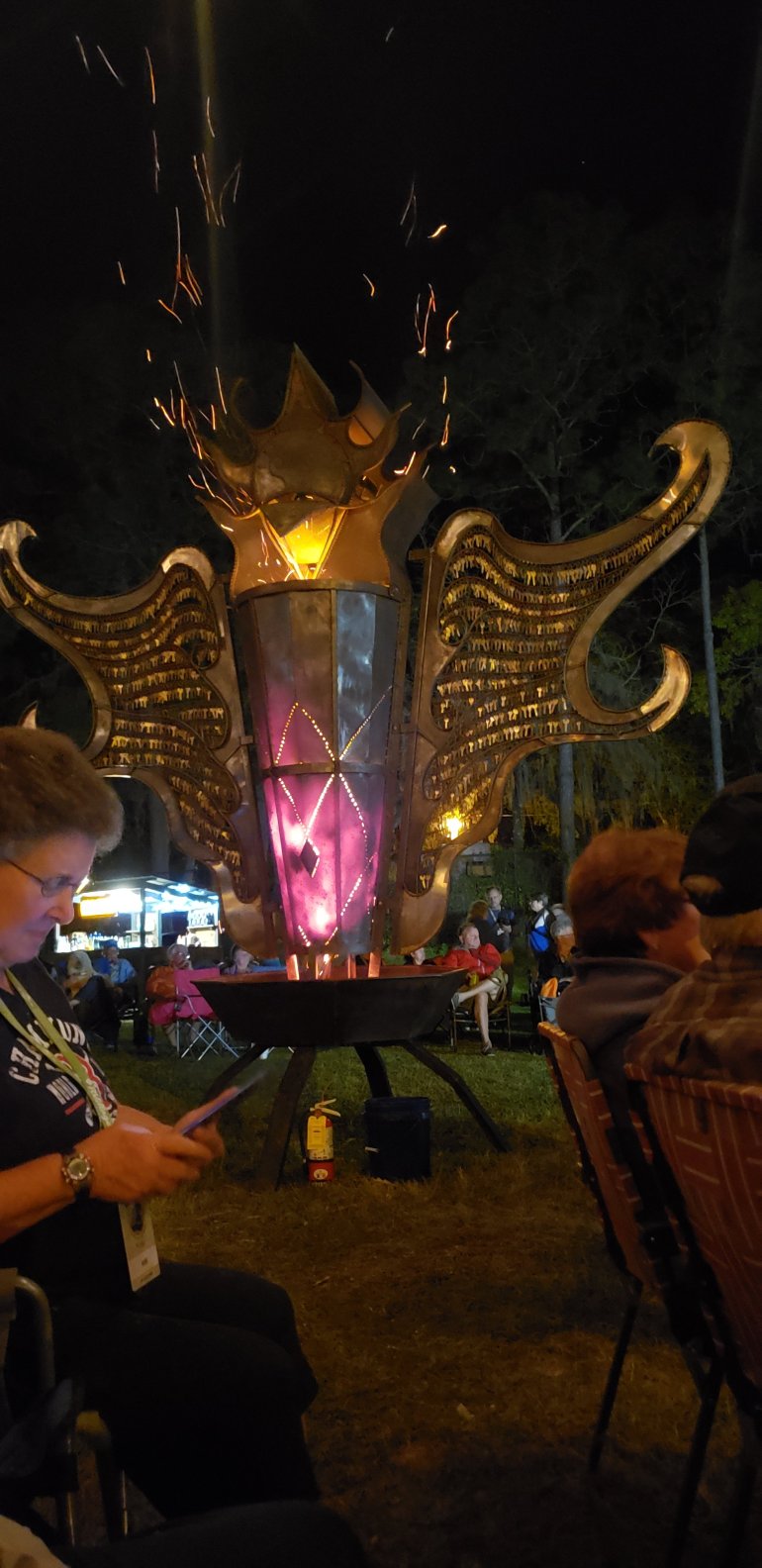They had steel sculptures that this guy welds and build a fire in them. They turn colors and are all different.