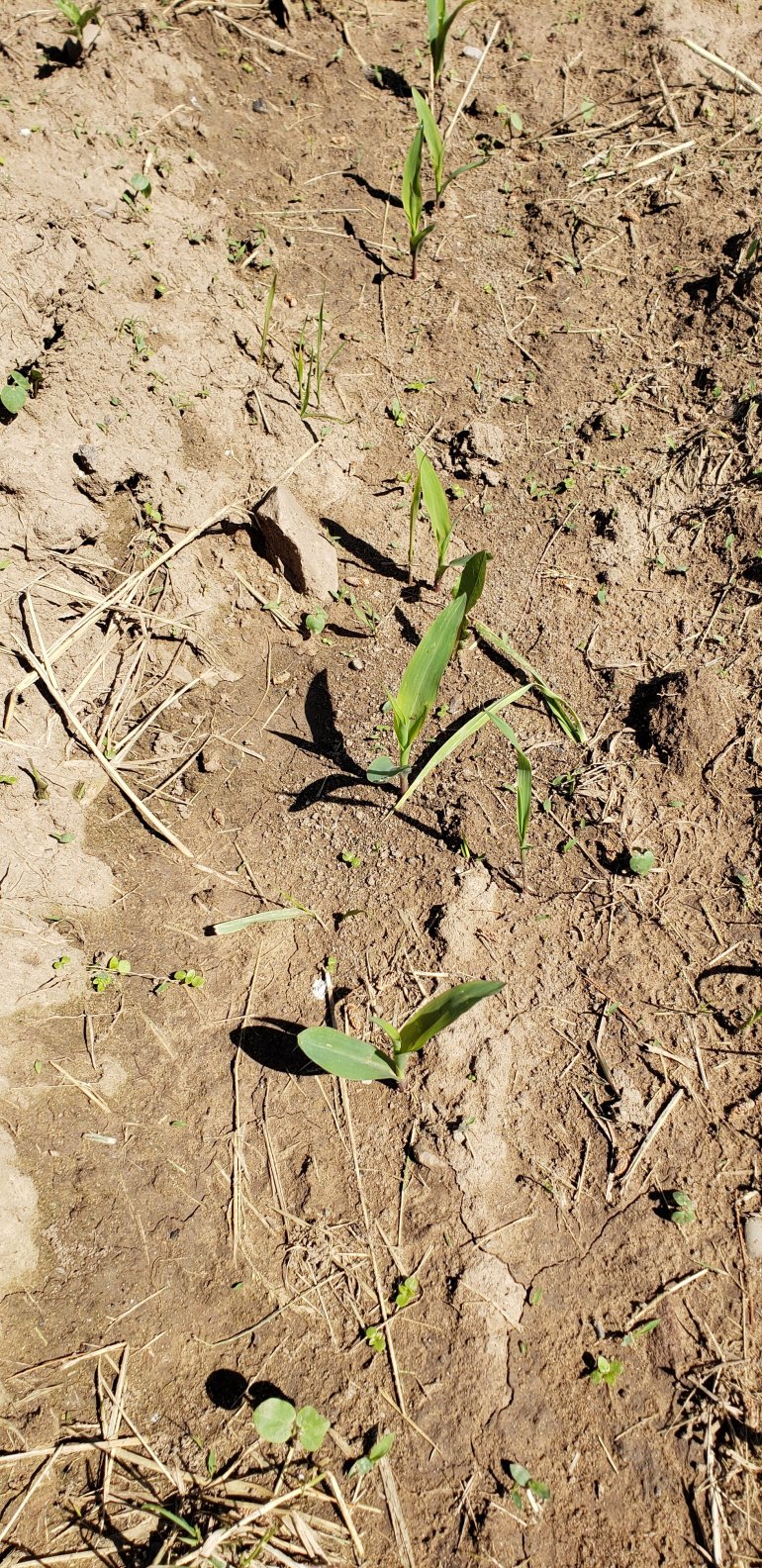 The sweet corn is about 4″ high if it’s not covered under water.