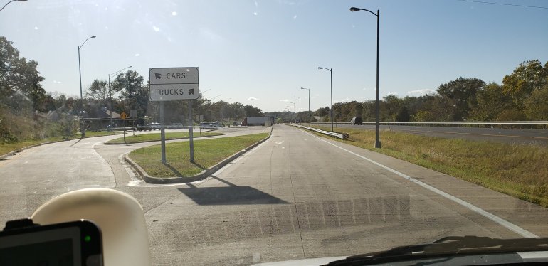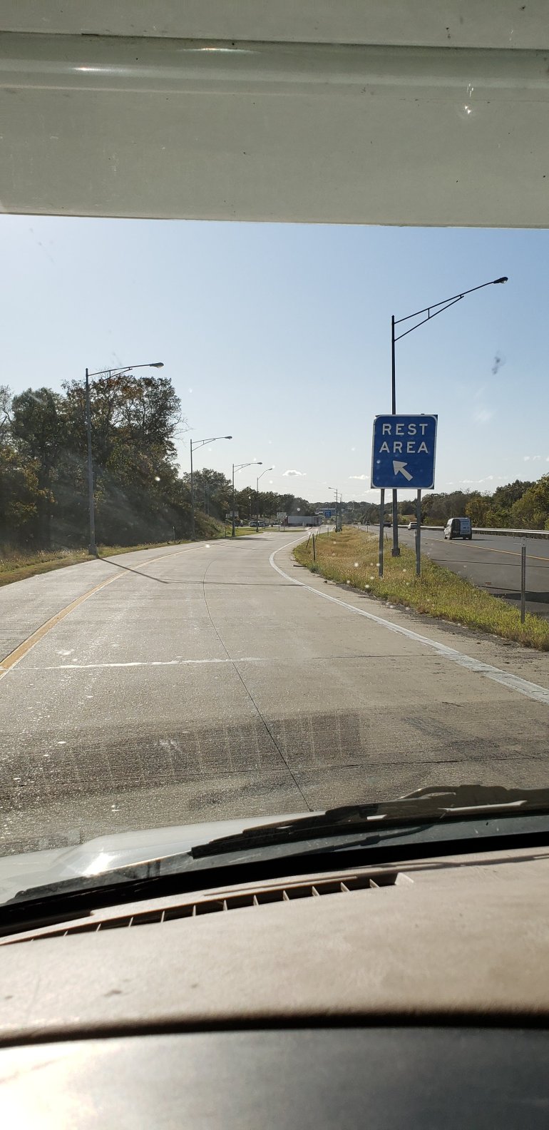 So I’m in the rest area in St. Clair MO and the rest area is in the middle of the road! Exit left.
