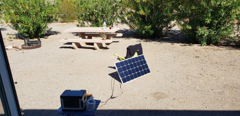 No electricity but that’s fine because my lithium batteries that are portable are working great. Still have to fire up the generator to make coffee because my coffee maker is about 900 Watts.