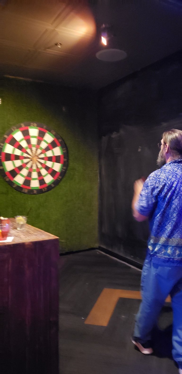 Played darts at the Gold Strike. Sorry, Tom I won.