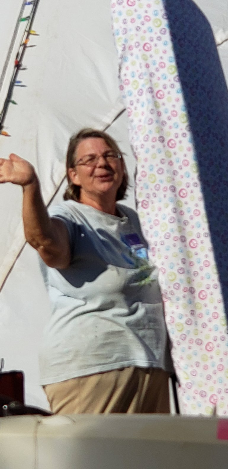 Sewing in the sewing tent at 10:00am. Back to it!All new different jobs. I gotta remember to take pictures if the projects.