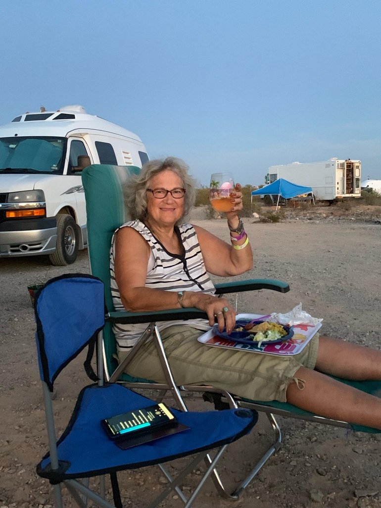 Was a great birthday! Sewed in the desert making windshield covers for vans and RVs and porta potty covers, curtains and all kinds of stuff.