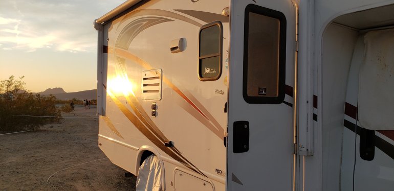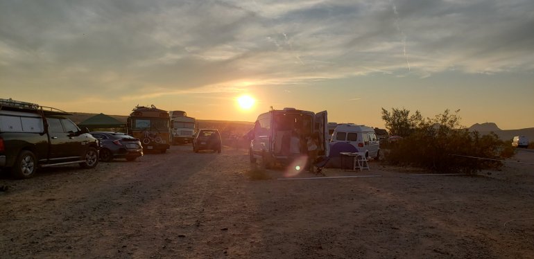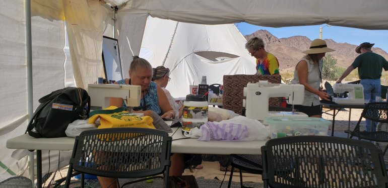 Really had a lot of ladies sewing in the mountain desert.Lots of projects all finished!Was a great 2019 Van Build Fest in Parker Arizona.Heading out tomorrow because of forecasted rain.Had parked next to a school bus (called skoolie). This was a family with a 6 girl and 8 year old boy. Zion and Skyann. It was fun watching them play and keep themselves occupied.I made them survivor bracelets and made Zion a cape and Skyann a scrunchie and barrettes.They came over the next day and read my fortune with Dragon Cards and made rubberband rings and woven bracelets for a small donation.π