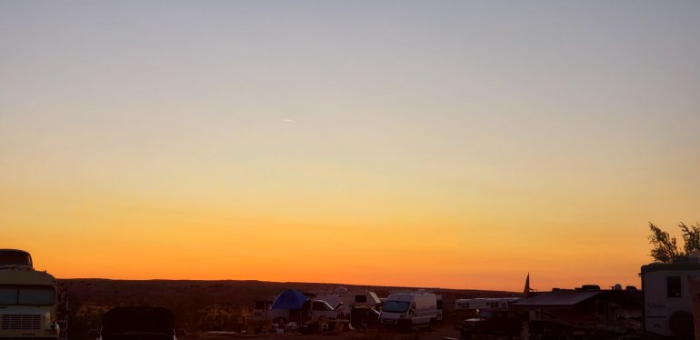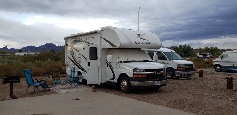 And a beach!Beautiful weather here, but packing up since sewing is done and rain is coming and lots of people are leaving.We (Marlene, new friend) are moving on to Cross Roads BLM land with the burros in Earp CA just on the other side of the Colorado River and we gain an hour of time! Cross back over, and you get it back!Strange. I don’t think they are worried about Y2020.Got to Cross Roads Campground. Beautiful weather until 8:00pm when the sky let loose. Rained all night and into the morning.Decided we would all do laundry and go out to lunch on Weds. since it was not a pretty day outside.