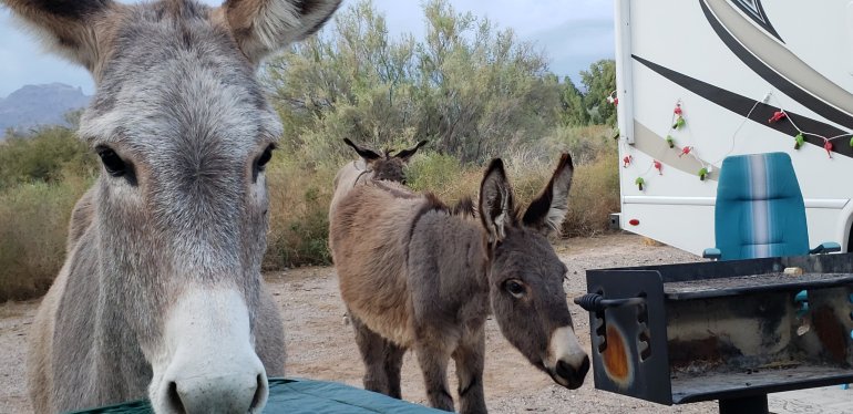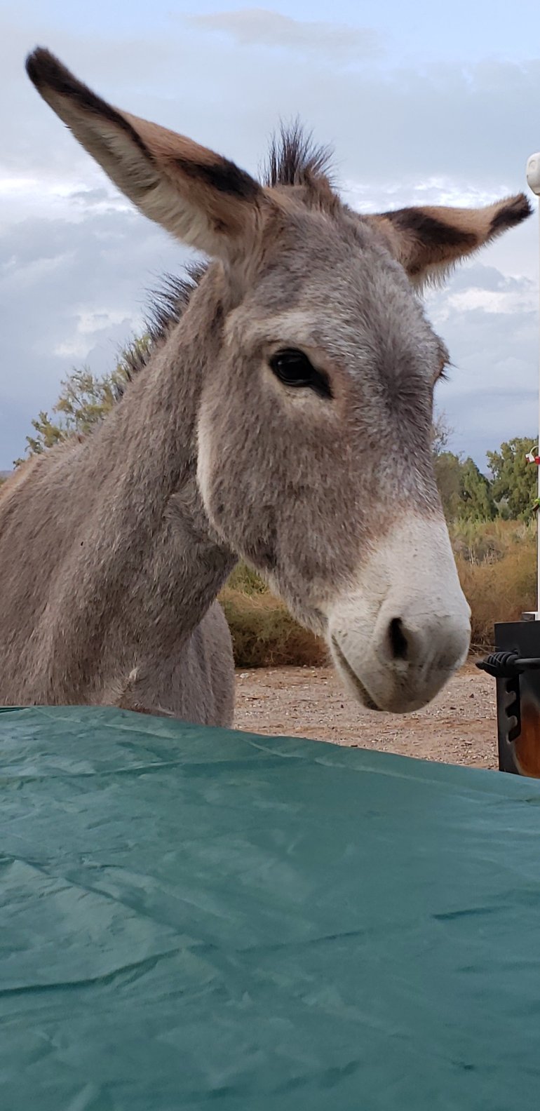 My campsite. We decided to have tacos and the burros showed up for some!