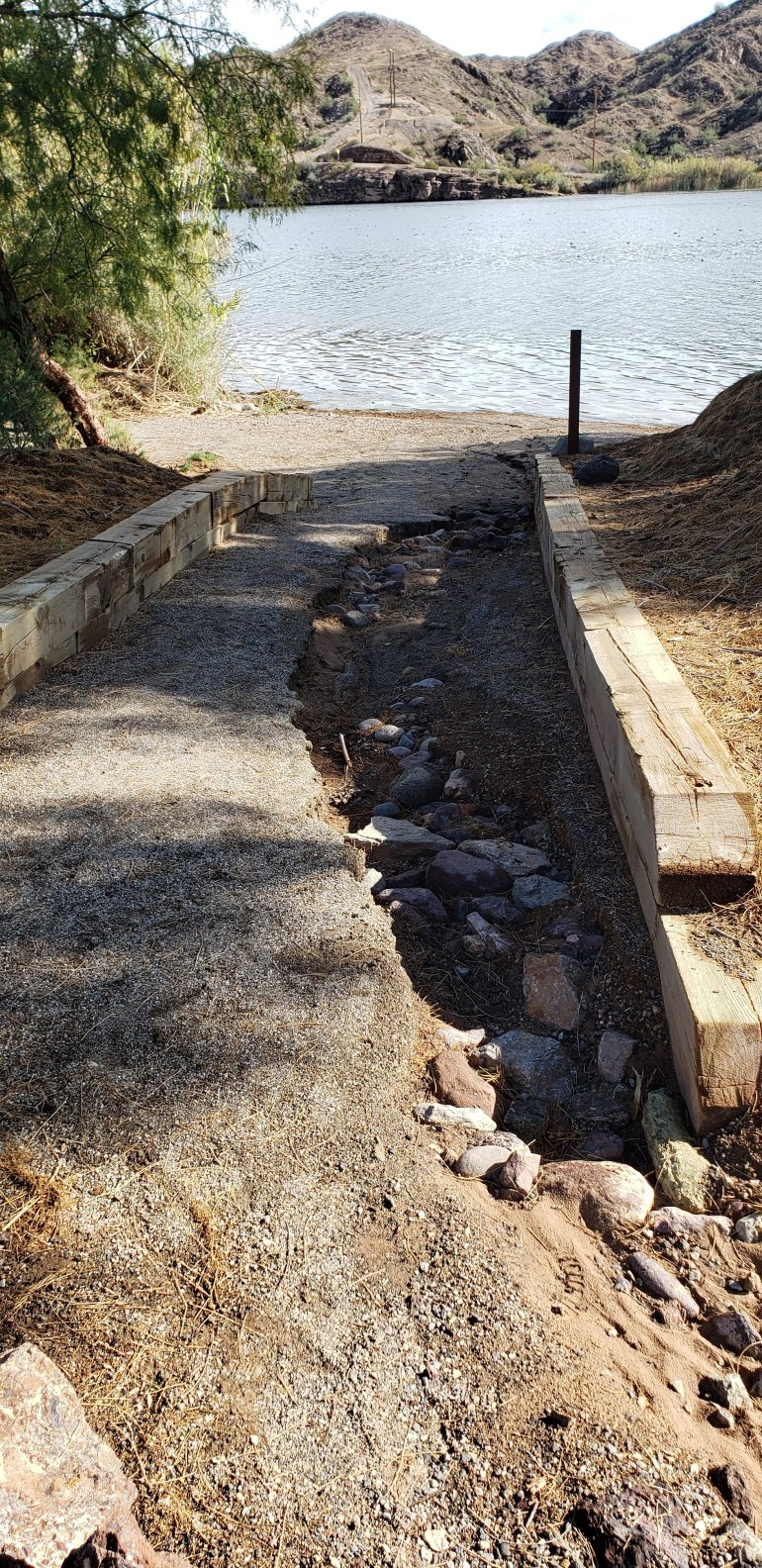 Right on the Colorado River. Rain washed out the walkway to the beach. It was done last Sat. This happened Weds.