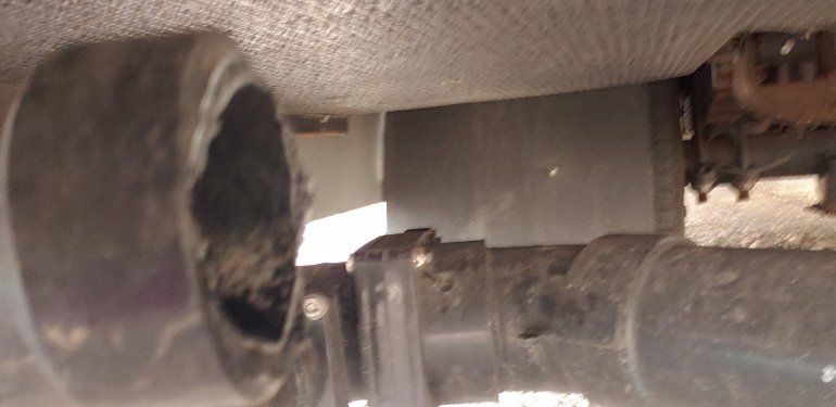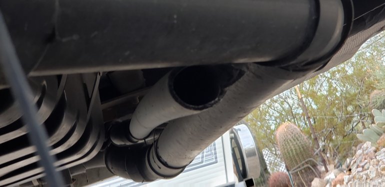 I was wondering why my Gray tank was always on E for empty. I looked underneath the rig and saw the pipe had broken on Shea road in those awful potholes.