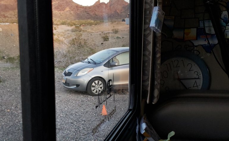 As soon as she left another car camper pulled in her spot and after that one, a big Canadian camper pulled in front of me. Getting crowded in the desert!
