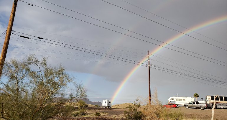 Happy Monday! Woke up to several raindrops with the sun shining! Knew there would be a rainbow!