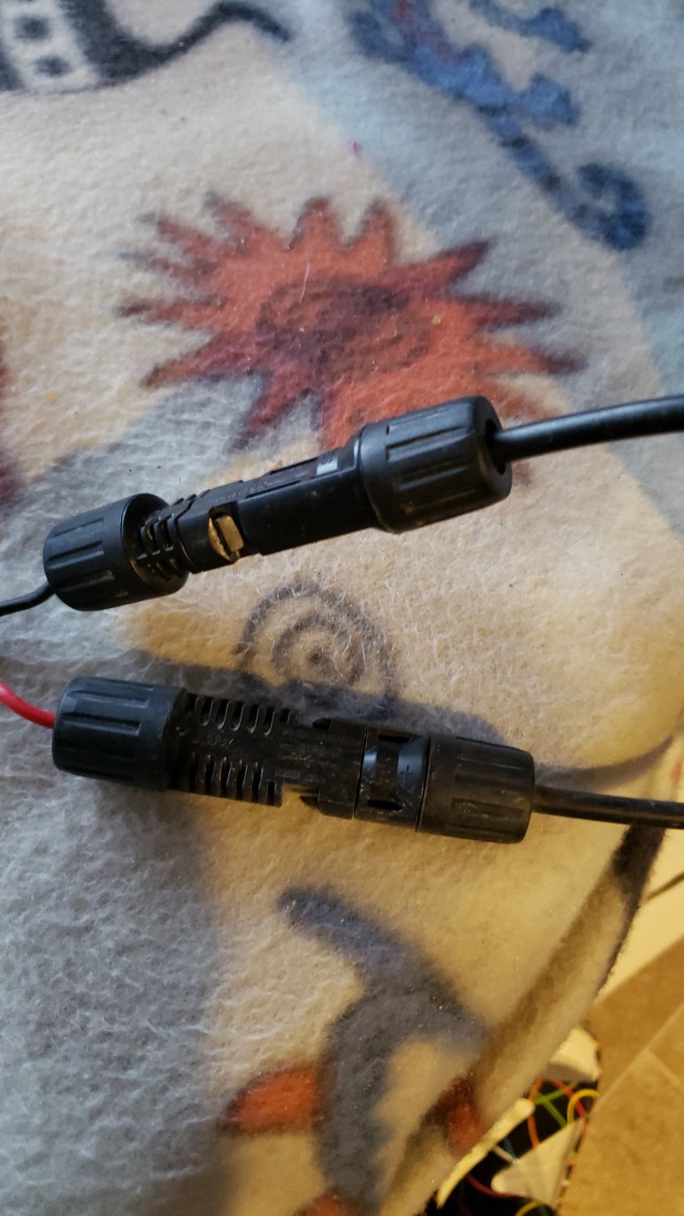 Rained pretty much all day and pretty cloudy. So I didn’t get any solar. The wind was pretty strong and ripped the cable out of my panel.Luckily I have a spare repair kit with that ranch that you need to take the M4 connectorsFixed it all up and I’m back in business.