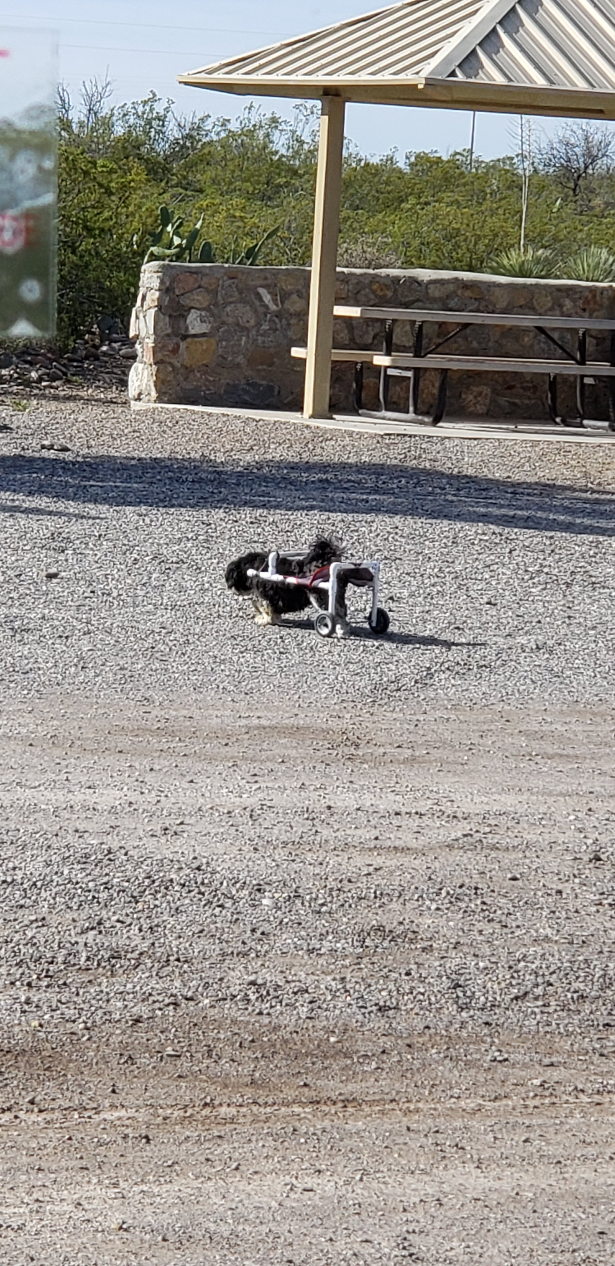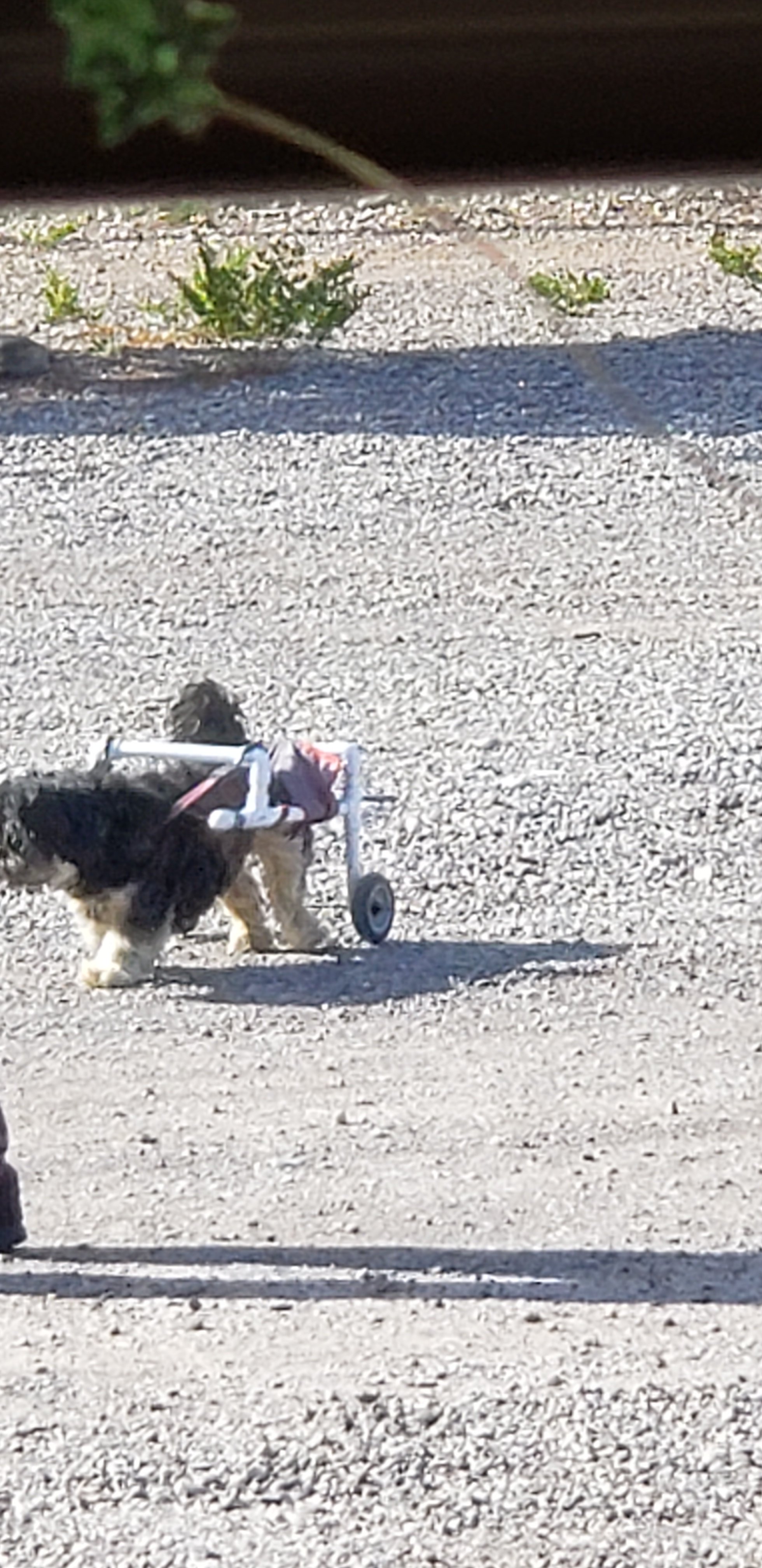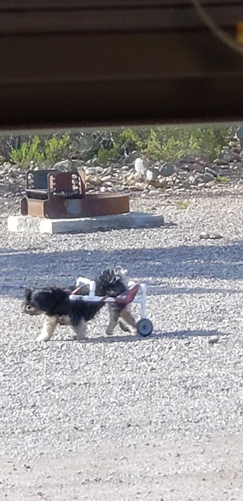 Ever changing view out your window! Saw this little puppy with paralyzed back legs and his little walking apparatus. Looks like a was made out of PVC pipe but it works!