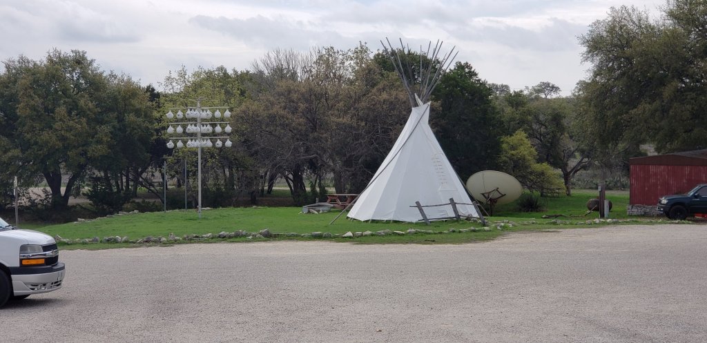 We first went to see Caverns of Sonora. We got there up a steep gravel drive and then parked on a very unlevel parking lot. Both felt we were going to fall over. We parked (on the hill parking lot) and went inside. Cute shop but 1.5 hr wait for a tour and it looked like rain so we decided to head straight to state park.