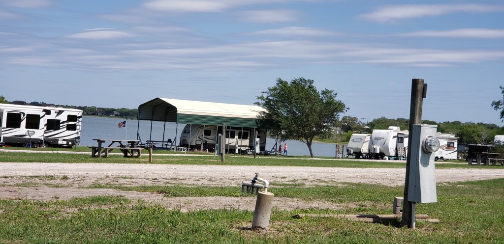 Finally nice weather. Trailer park has a mossy beach so good for jet skiing but not swimming. No docks. Just a fishing pier.