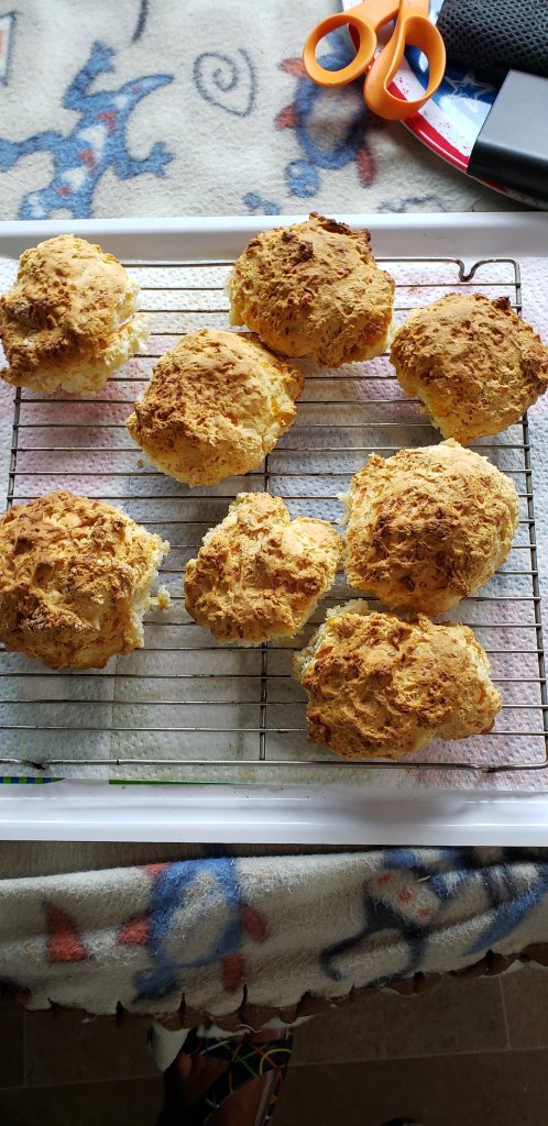 Made cheddar cheese biscuits today. Was on the cool side so I lit the toaster oven.
