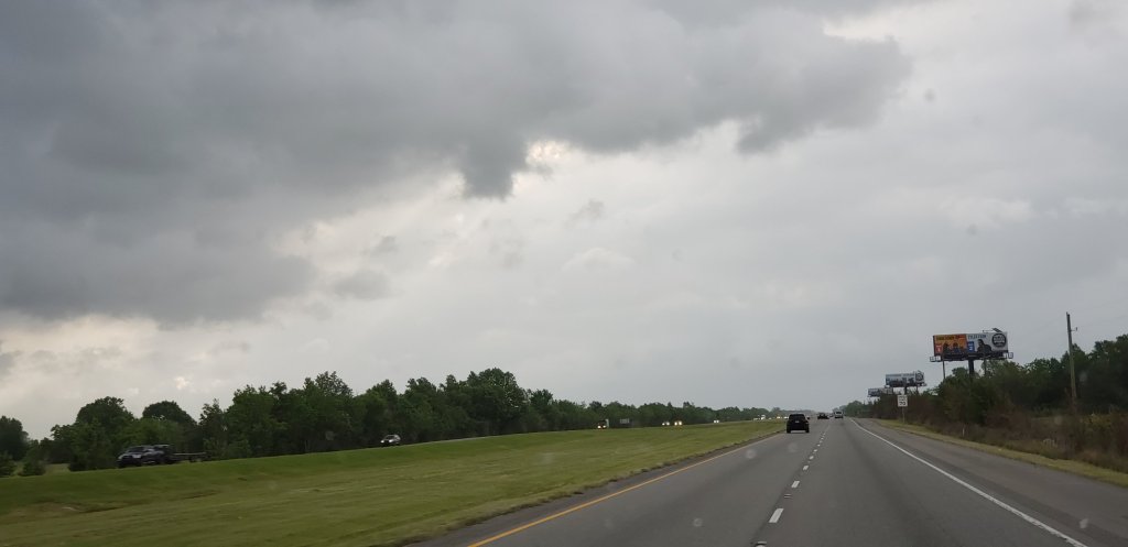 Heading into Louisiana. Trying not to breathe. They have a very high COVID count. Not a whole lot of people wearing masks.