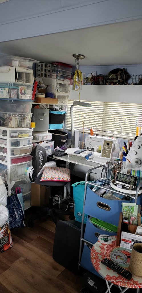 I took the one from the camper and Ron had left 1 here so I dug it out of the closet in it rotates so it gets into the sewing nook.