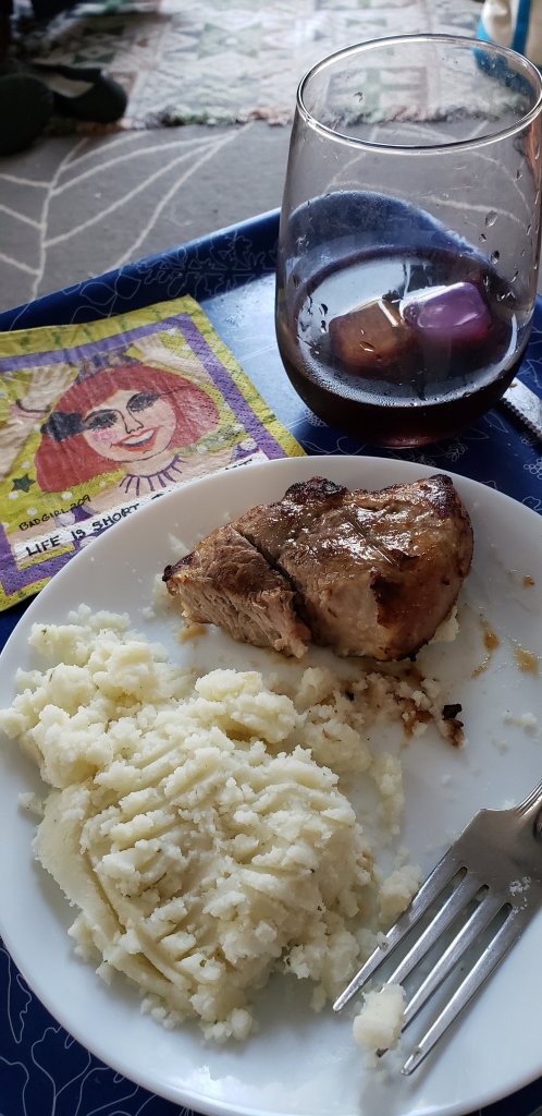Came back to the villa in started up my air fryer. I love that thing. Is a pork tenderloin in under 14 minutes. Crispy on the outside juicy on the inside.