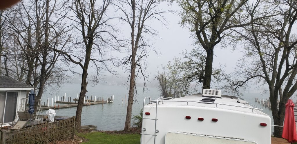 Very foggy but decided to go out to the camper in pick up a few more things. I know on the fall of the staff that drag them all back in here!