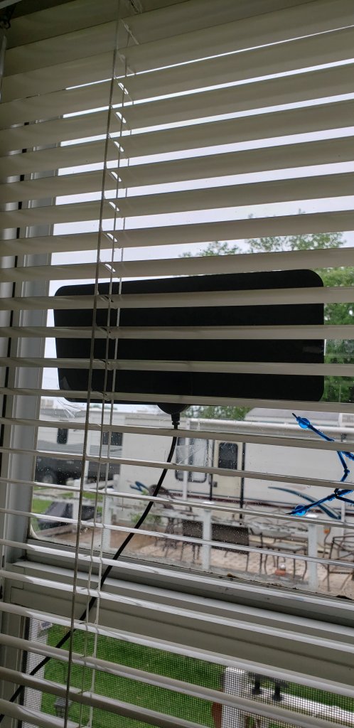 I used to have a big antenna and previous owner took it down. So I bought a little cheapie one at the dollar store and stuck it in the window in and actually brings in some digital channels and I can get ABC now.