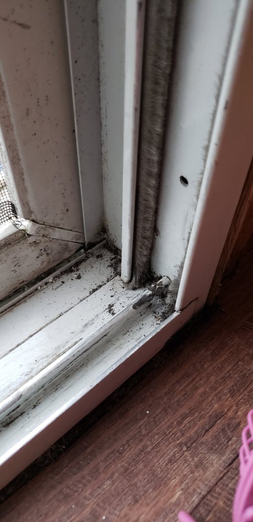 The little channel where the water runs out the sliding door was blocked so hopefully the rain runs other way now.