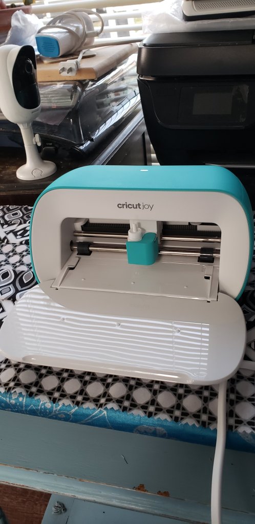 About a fun little thing called it Cricut Joy. A tiny little cutter machine that works off Bluetooth and works with your phone where you can design sayings and pictures and cuts it out on vinyl and makes cards. Cool