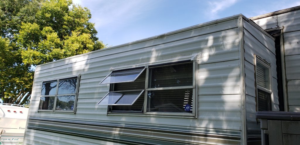 Beautiful day at theLake today. Decided to paint the top of the camper and ridge line. Bought some $36 a gallon rubber paint for it. Went on perfect.