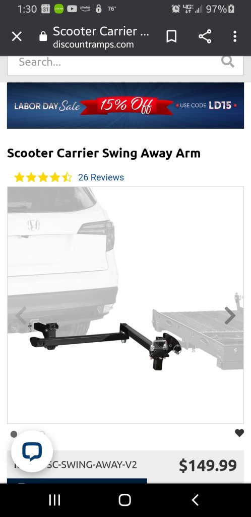 Well I didn’t make it to Harbor Freight. I called the people at discount ramps and they said that swing arm would only work with certain baskets and carriers. So I had to buy one that would fit.