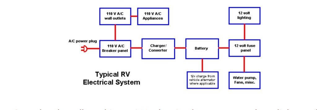 Here is a simple diagram of a 12volt battery configuration for your typical RV.