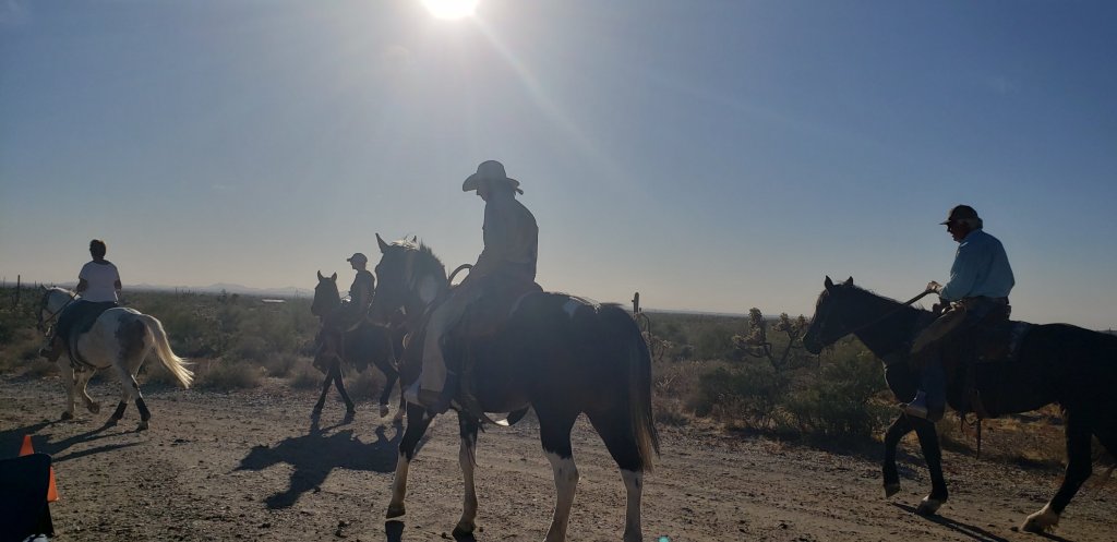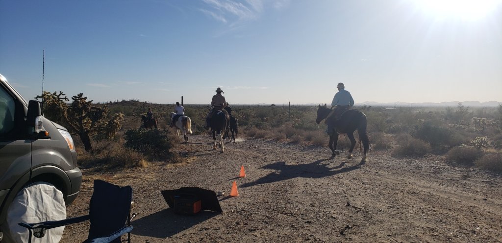Warm days cool nights. Lots of horses riding through. There is a horse camp nearby and they frequently ride by the camp.