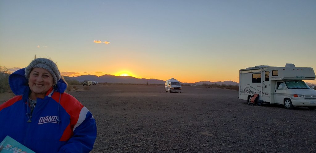 Camping buddy Myra came to camp with us. She is from Chandler west of Tucson. She has the cutest rig. A little Itasca Sunstar with a VW engine.