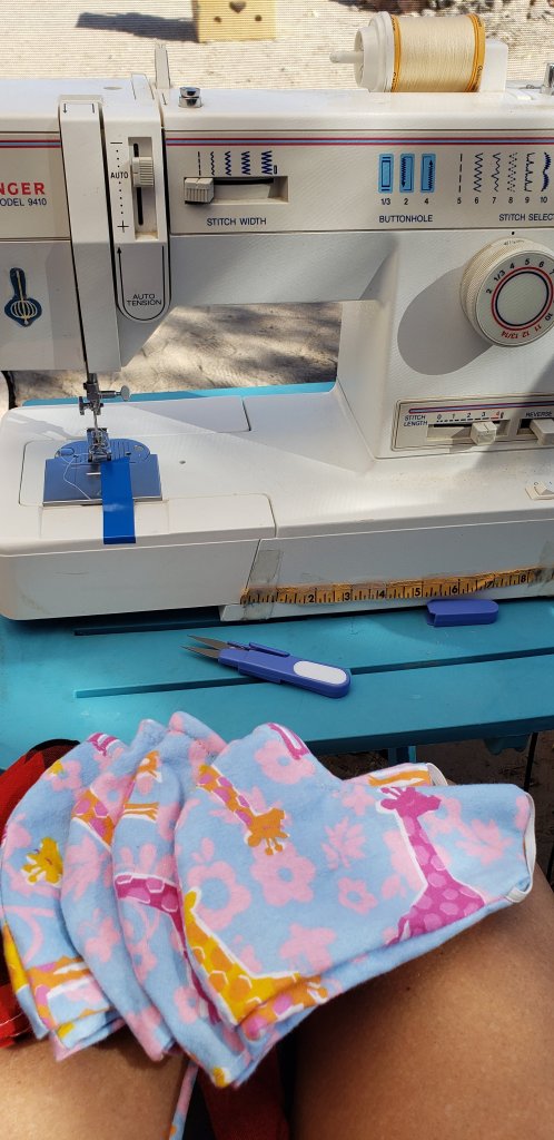 Brought a bunch of fabric with me to use up. Anybody need a mask let me know.
