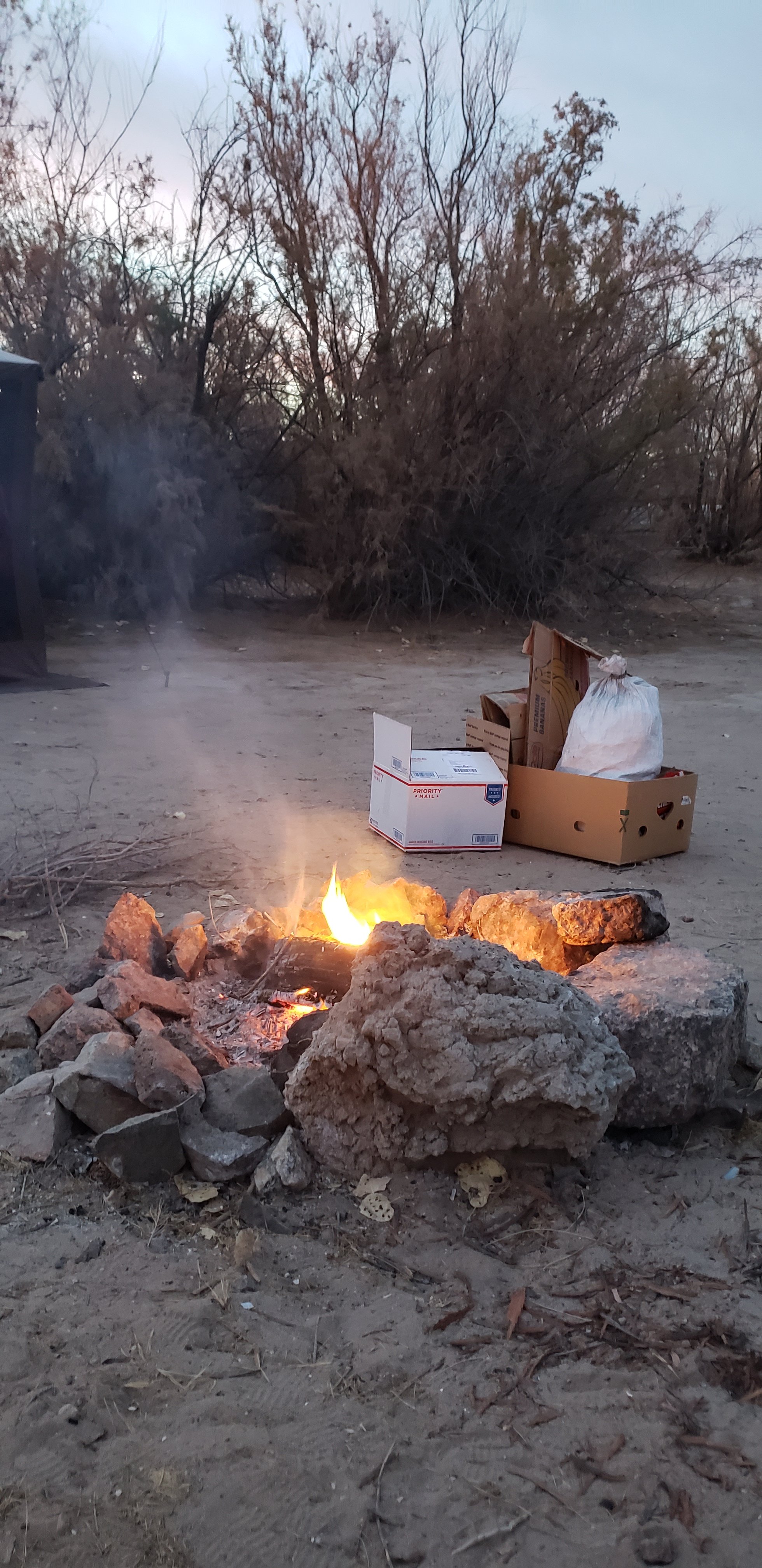 Burning the cardboard. Great firestarters.