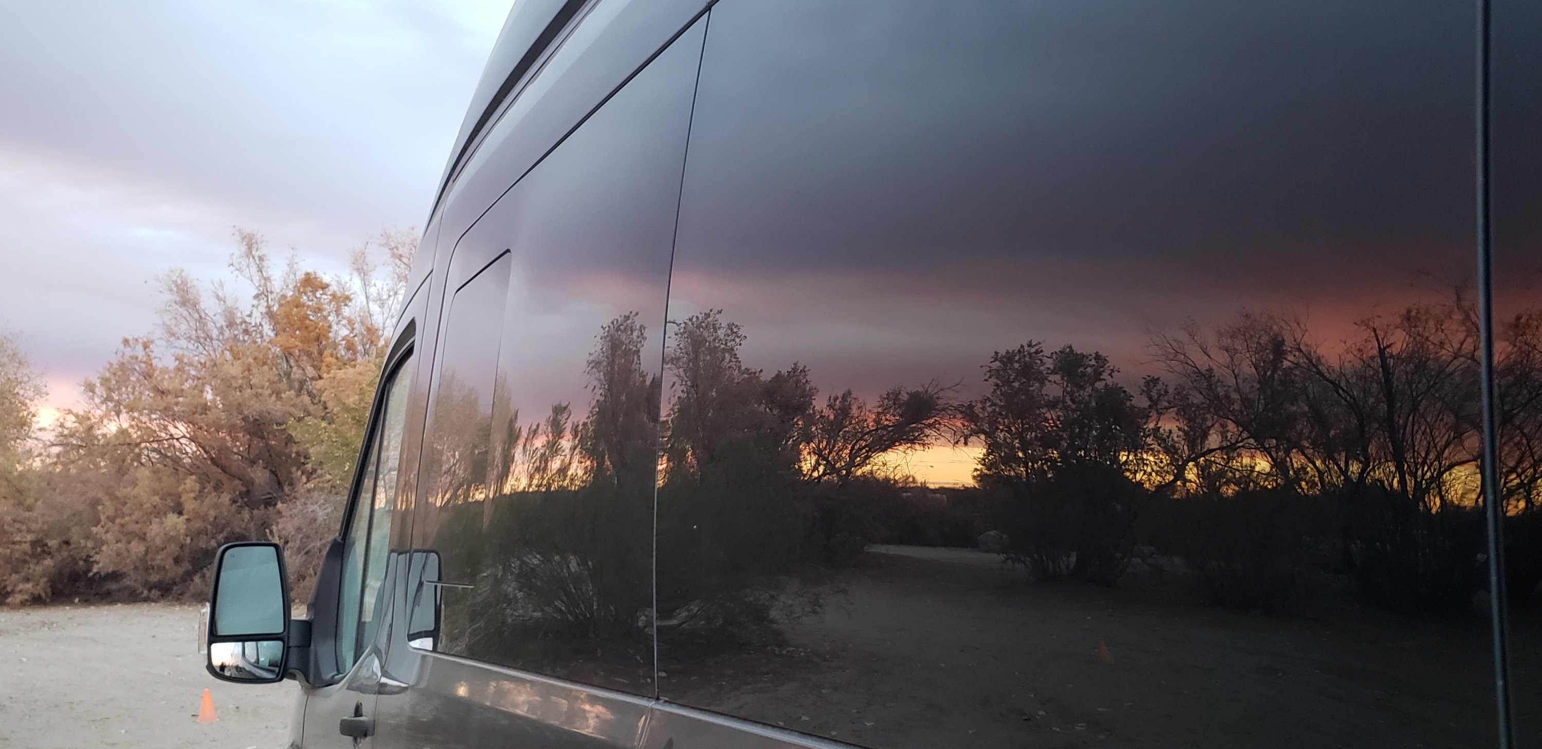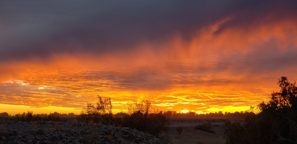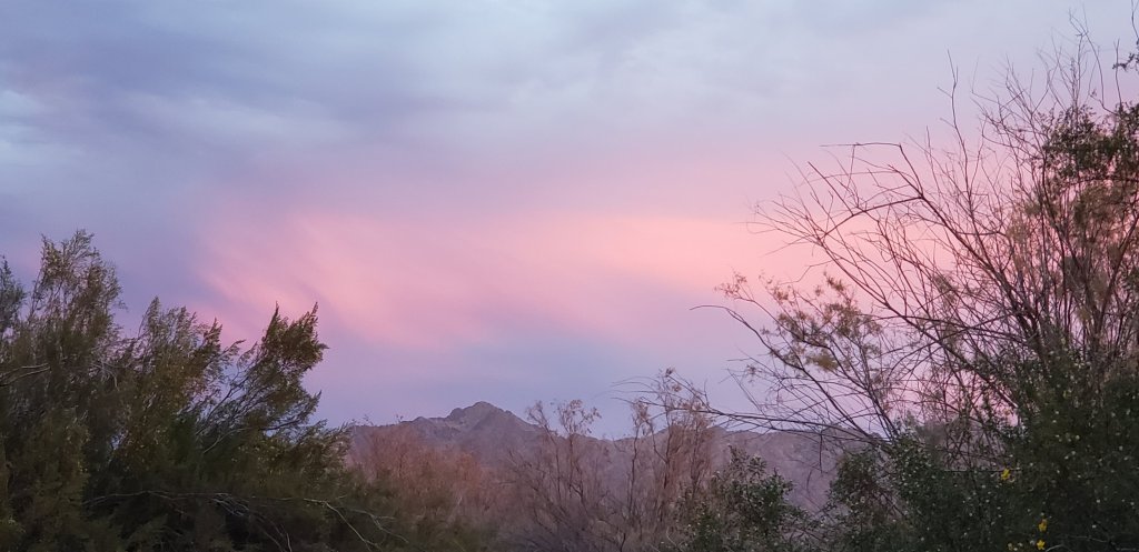 Jan. 18 – Monday 0 January 18, 2021January 18, 2021 Written by Glamper Jan The sky did not disappoint tonight. Even what looked like a dust rainbow. Then the purple sky 💜 Happy trails. Share this: Like and Follow Thx! Share on Facebook (Opens in new window) Facebook Share on WhatsApp (Opens in new window) WhatsApp More Share on Pinterest (Opens in new window) Pinterest Like Loading...