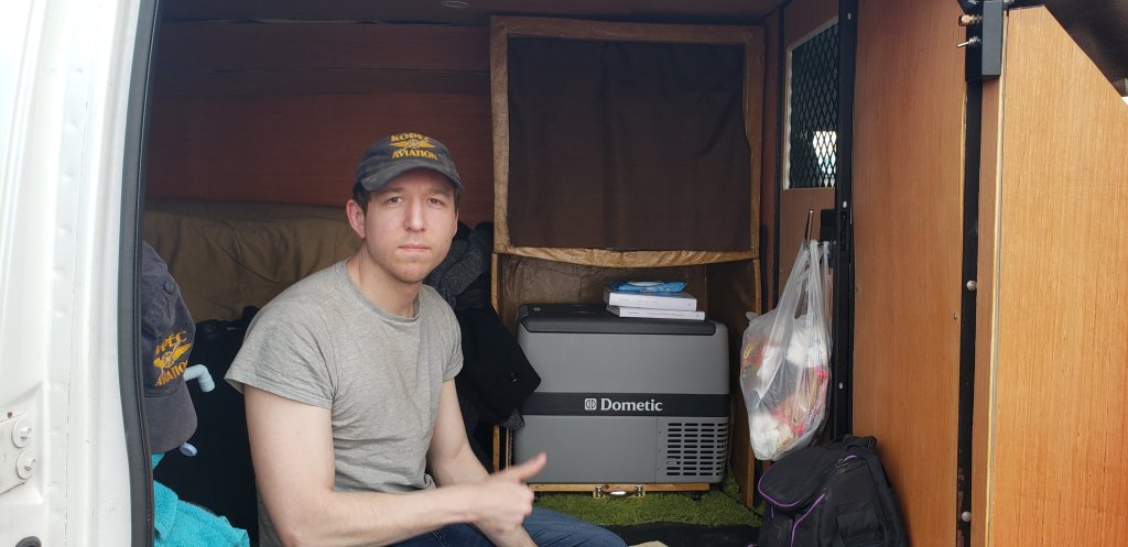 He has a handicap bus that he converted into a camper. I made a joke about always wanting to ride on the short bus. Ha