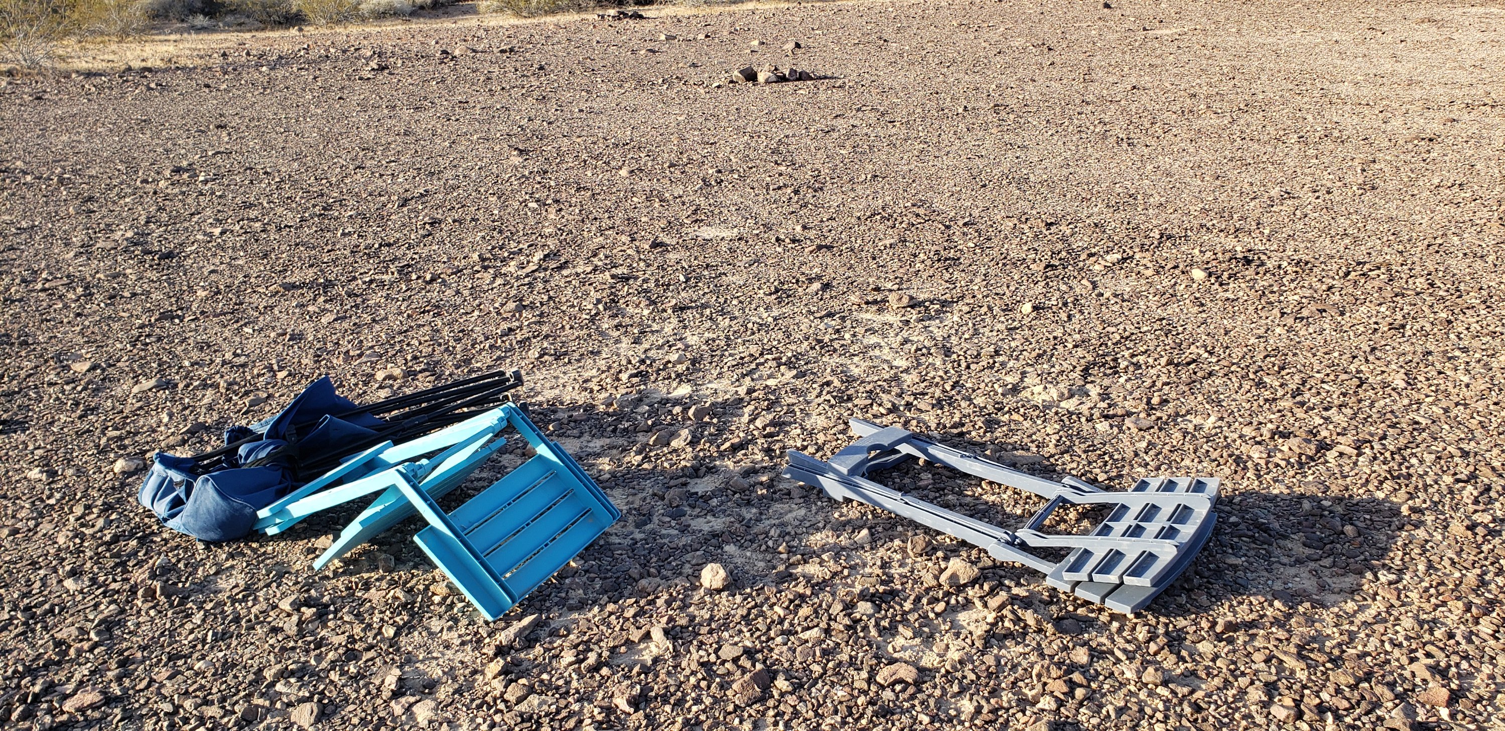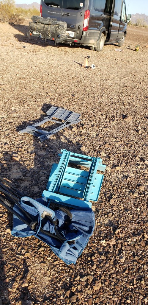 I left yesterday to go to coin hunt and the wind took out both my tables and chair.