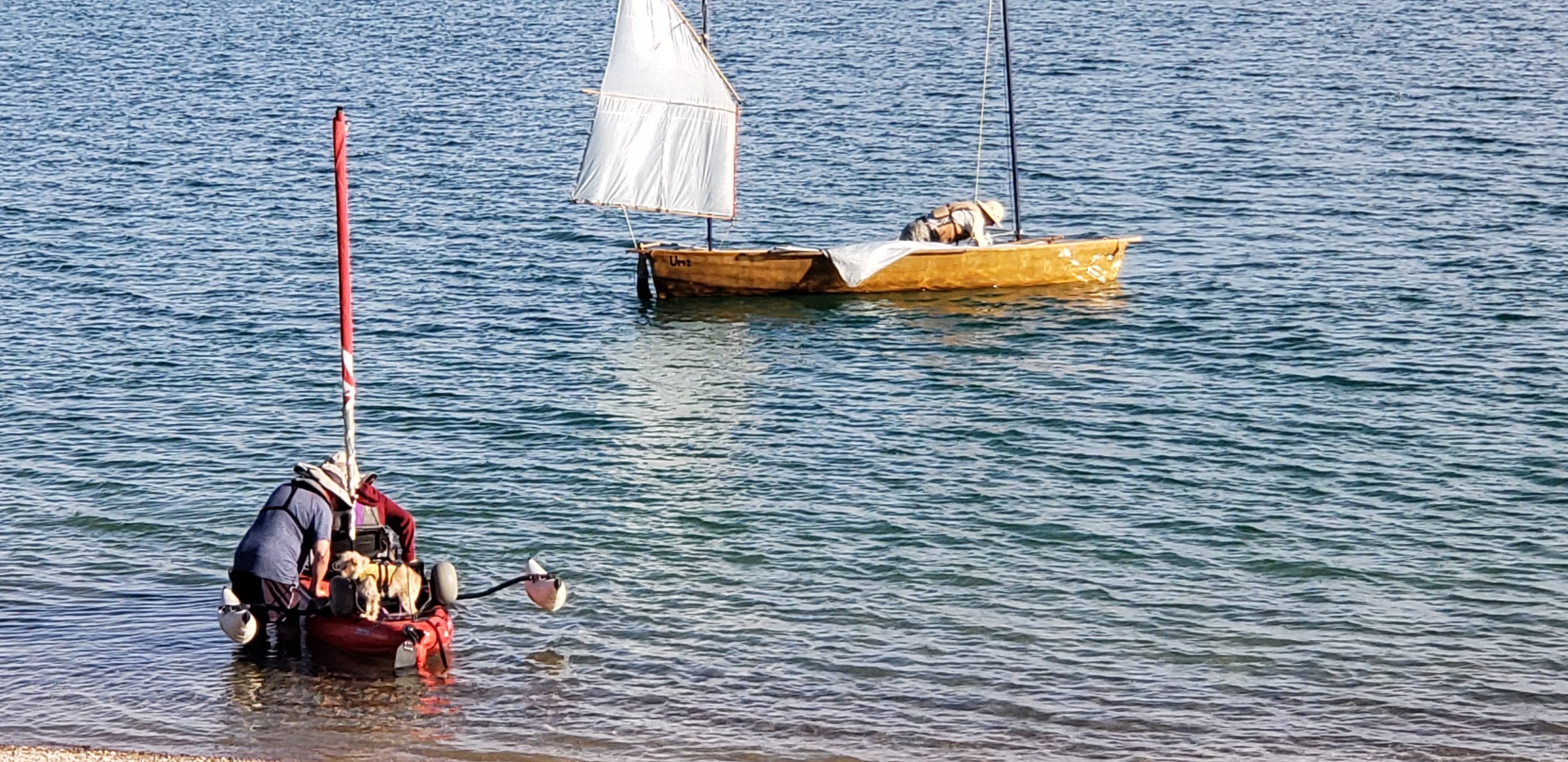A camper van arrived with a homemade boat. It was really cool.