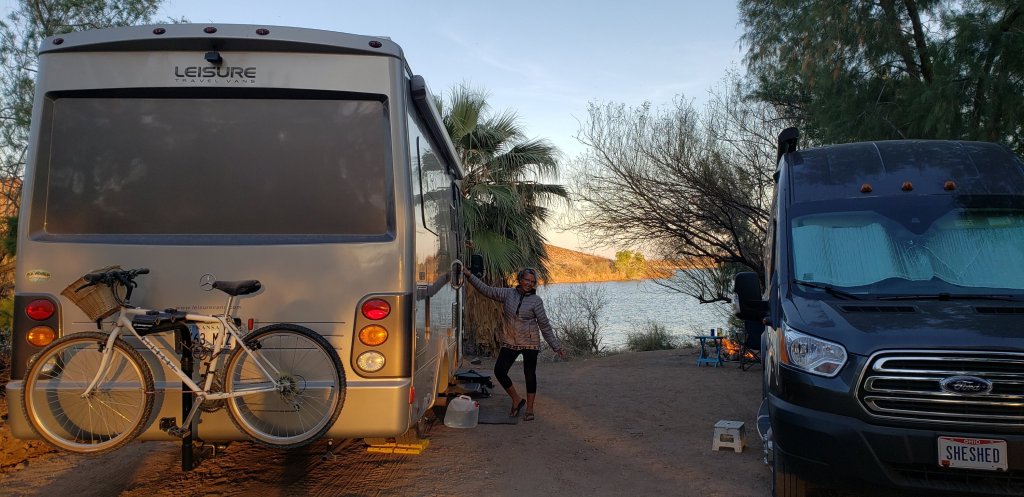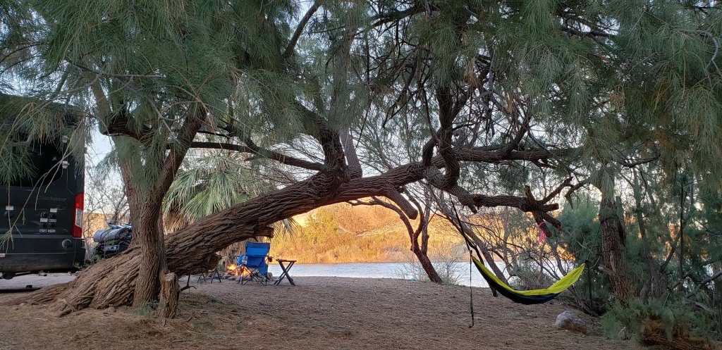 The tree is inches from my van. The wind is blowing but I think I’m good. Very thin branches next to me.