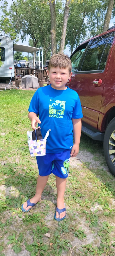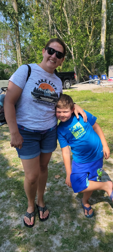 Sweet little 1st grade Hunter and his mom Kelsey from the old park came for a visit! I told him we had a pool and he was so excited.