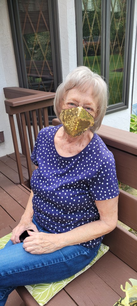 Then I swung by my DEAREST (club) friend Barb and that girl is the fountain of youth! Wearing her Glam mask from a resent wedding.