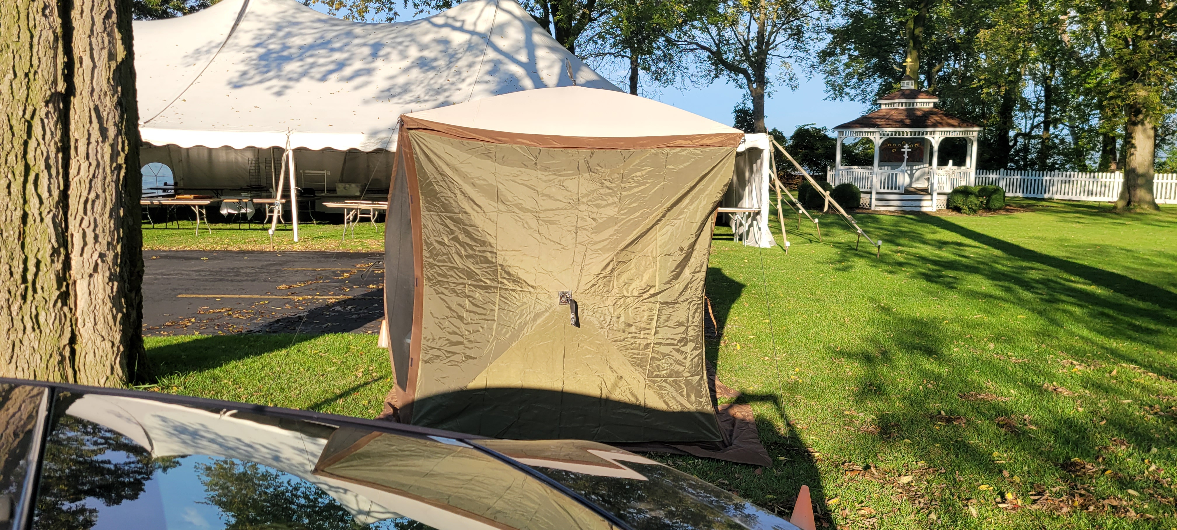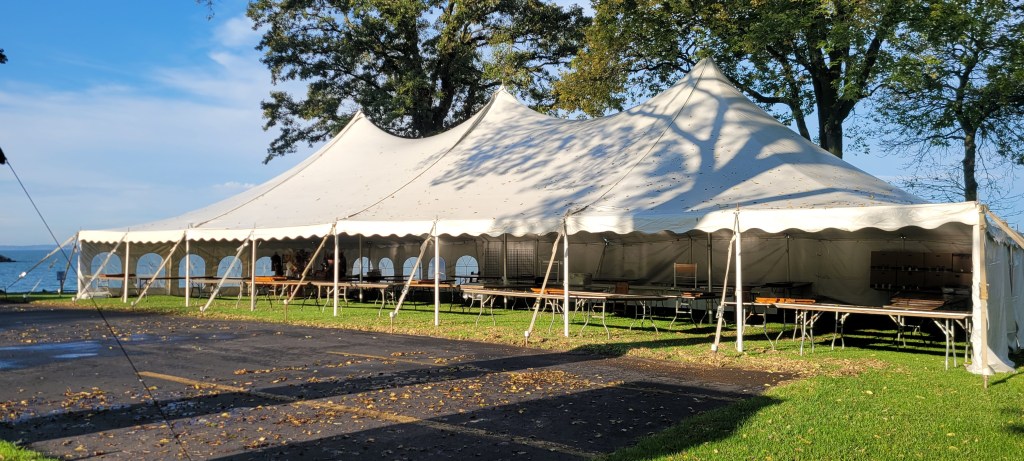 Almost D-day for the craft show. They told me I could set up early but it was pouring down rain! So at 6pm it cleared up and Peggy and I headed over to put the Glam shell up. I changed the name to the Glam Clam.