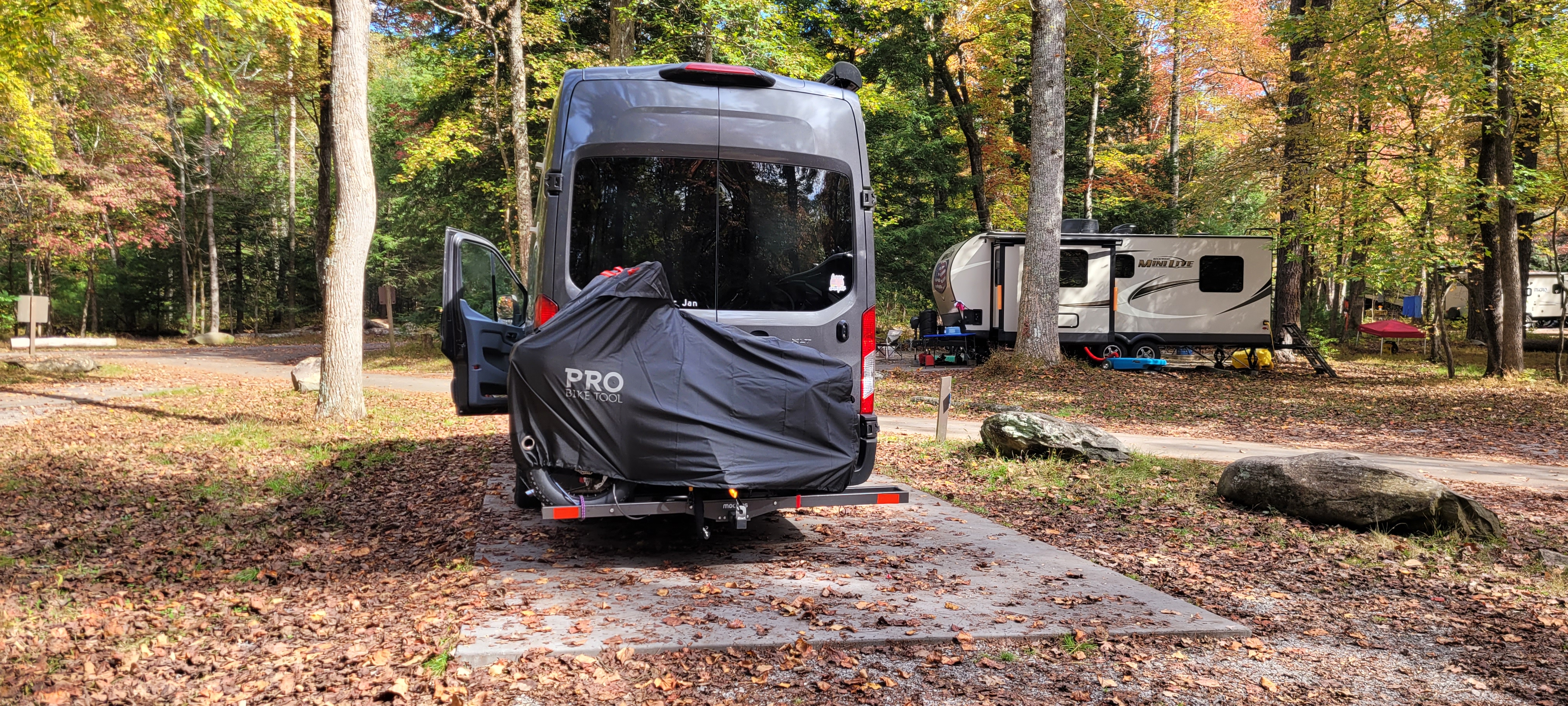 Jill took me to Ellen’s today. Then we drove up to the Lake tonight. We left by 3:00! So we got here at 5:30 so it was still light out and I got to load up the bike on the rack. It’s pretty stable.