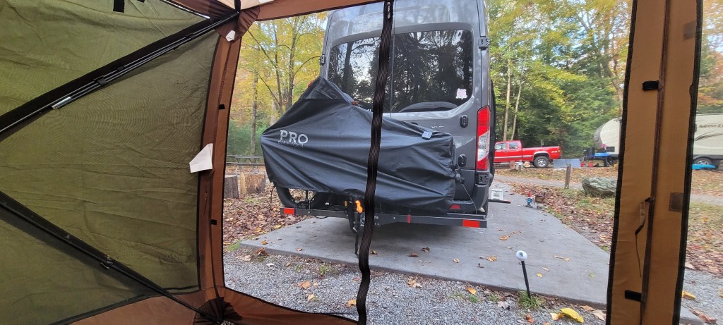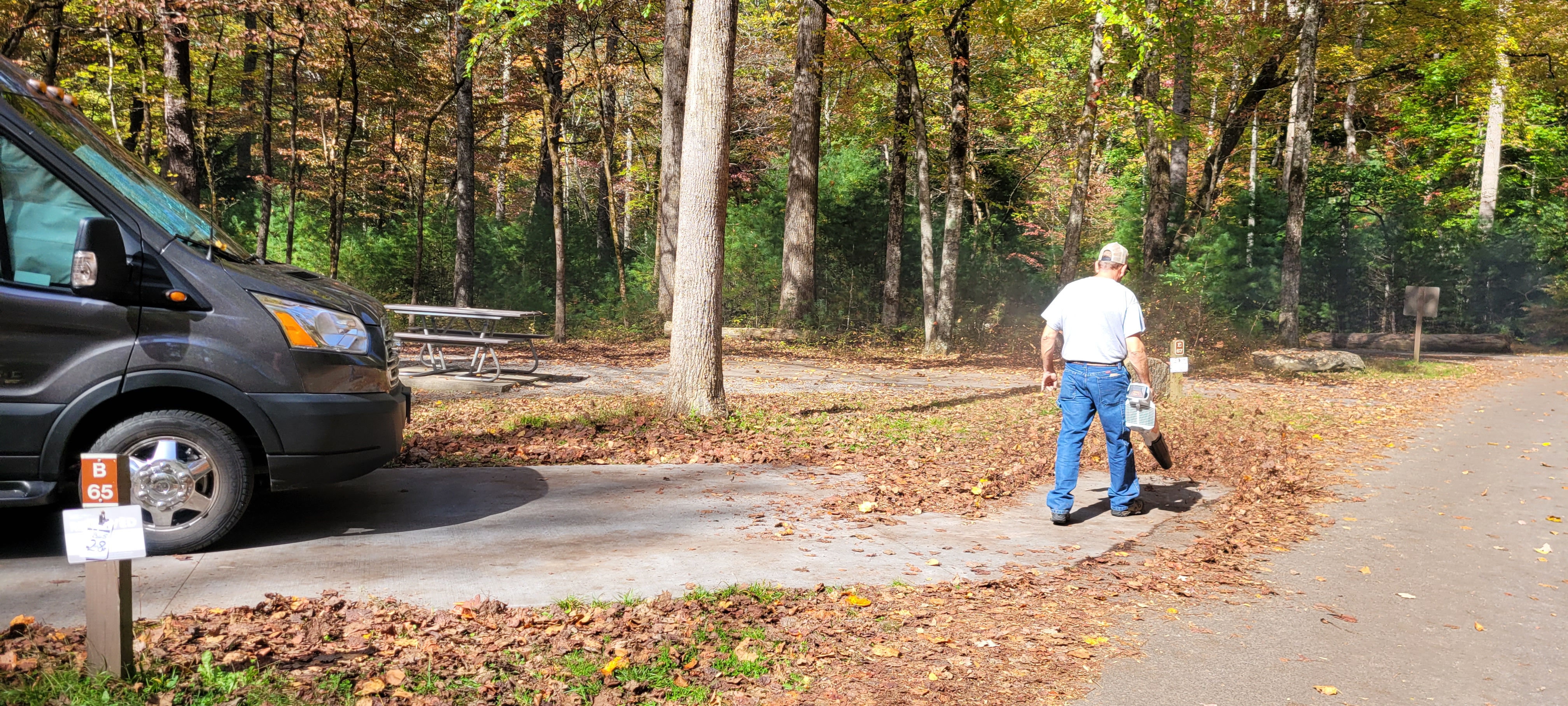 A guy even came over and leaf blew my whole site for me! I love camping next to grandpa’s. Ha