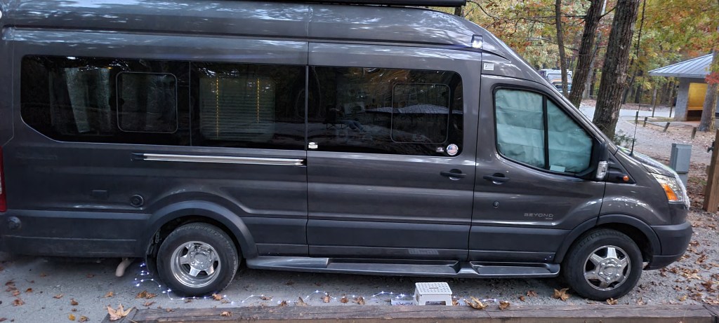 Ok. I get far behind on these posts because there is so much to do when you are chillin in the woods. Gotta walk around and see all the other Transit owners. Met a couple from Columbus GA. Air Force Veteran and wife. She fell pulling her weeds and fractured her pelvis. He just had hip replacement surgery and they are camping in their Ford Transit van! Sold their big camper and tricked out their transit!
